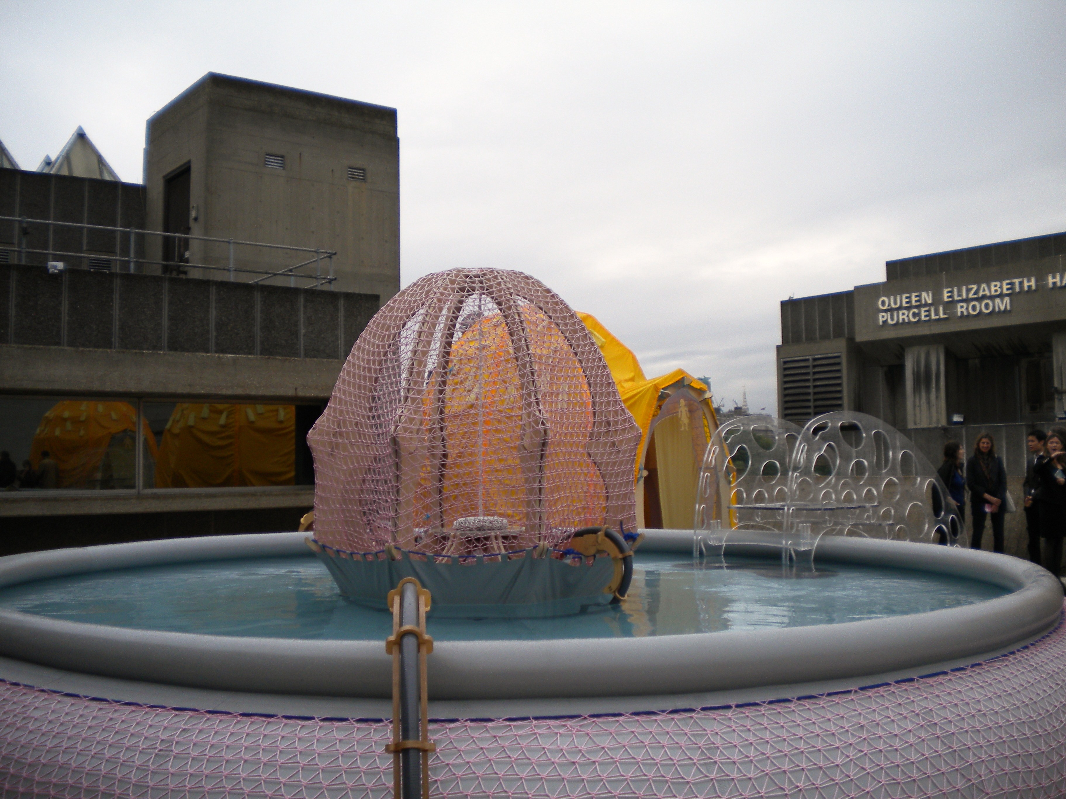 The place to be if London ever gets any hot and sunny days will be the roof of the Hayward Gallery where Ernesto Neto has built an installation that includes a swimming pool and colourful poolside cabanas. At the opening I attended however it was brutally cold and although the water itself was warm, there was nobody brave enough (at least while I was there ) to jump in.