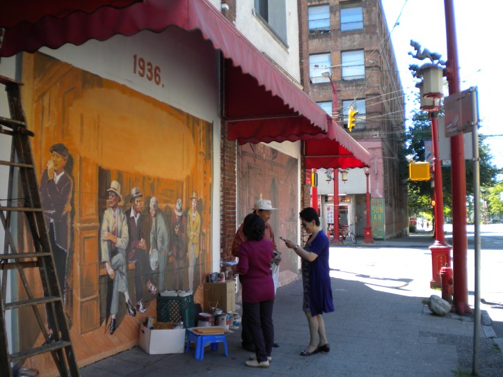 I was really happy to see this mural being made, it’s part of the recovery of Vancouver’s historic Chinatown. This has always been an interesting area, with fascinating architecture as well as a plethora of noodle houses and so forth. But it’s also such an important part of the city’s history, in a way it’s a big key to its development, and that of the province as a whole.