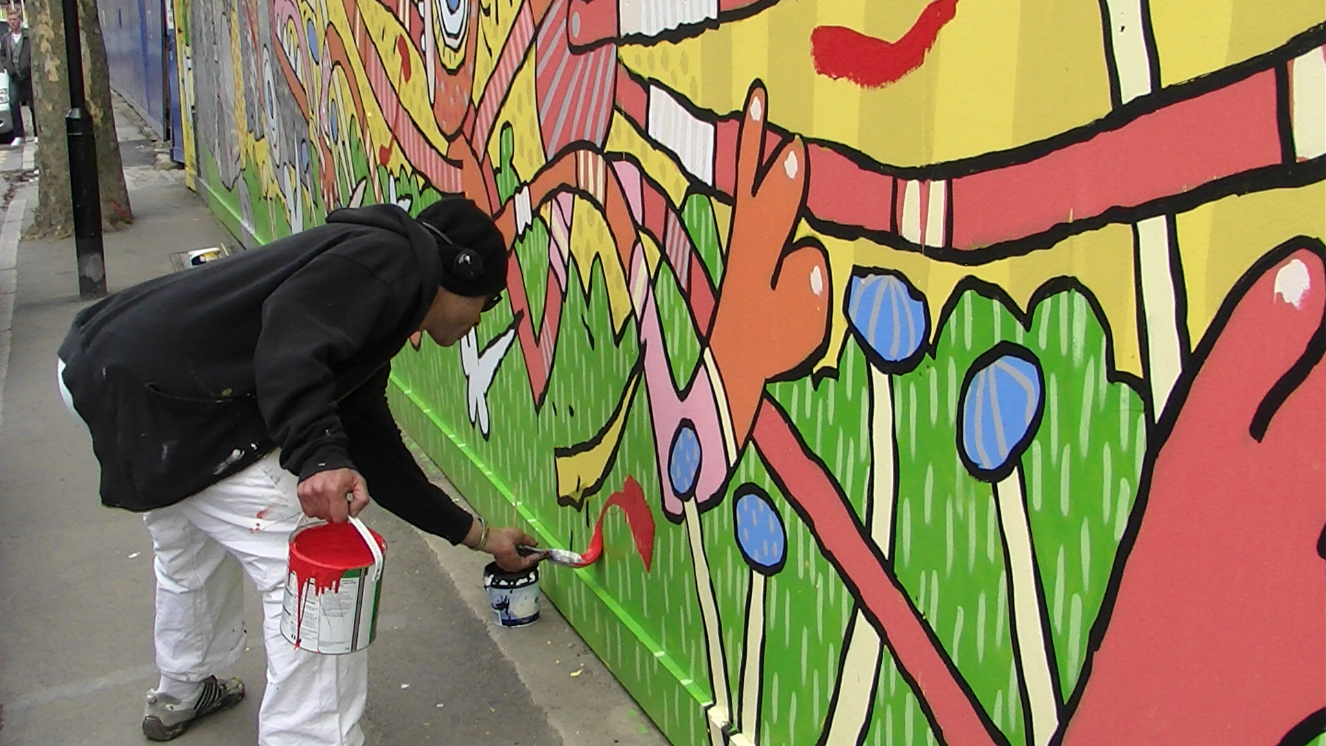 above, Nazir Tanbouli painting a mural on Whiston Road,London E2