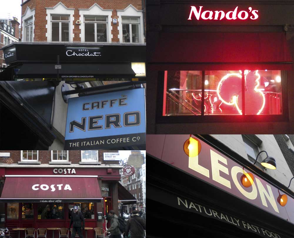 To the eye the principal visual manifestation is notably the presence of chains. Mainly cafes and bar chains replacing the old cafes and bars that used to be there. (I have no issue with chains that sell useful things like Ryness!) I started to take snaps of them. I was glad to see that some things, like Bar Italia and the Lorelei are all still there. I didn’t stop for coffee this time but I waxed nostalgic to come back and do just that next time I come for a movie.