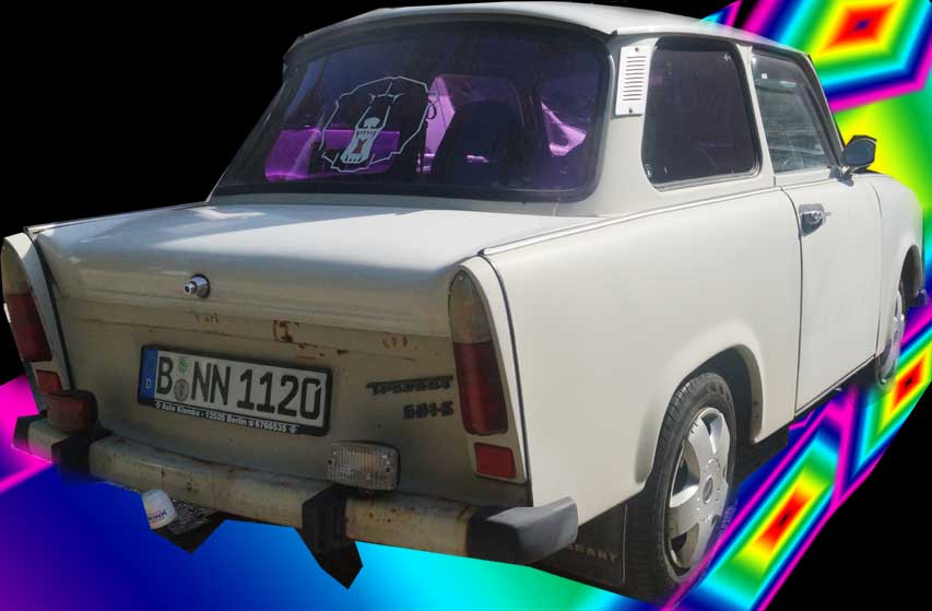 [ps. the photo above, the reminder of the 80s actually although it is an 80s car – an East German Trabant – I photographed it in Sept 2012, here it is in situ in Berlin: