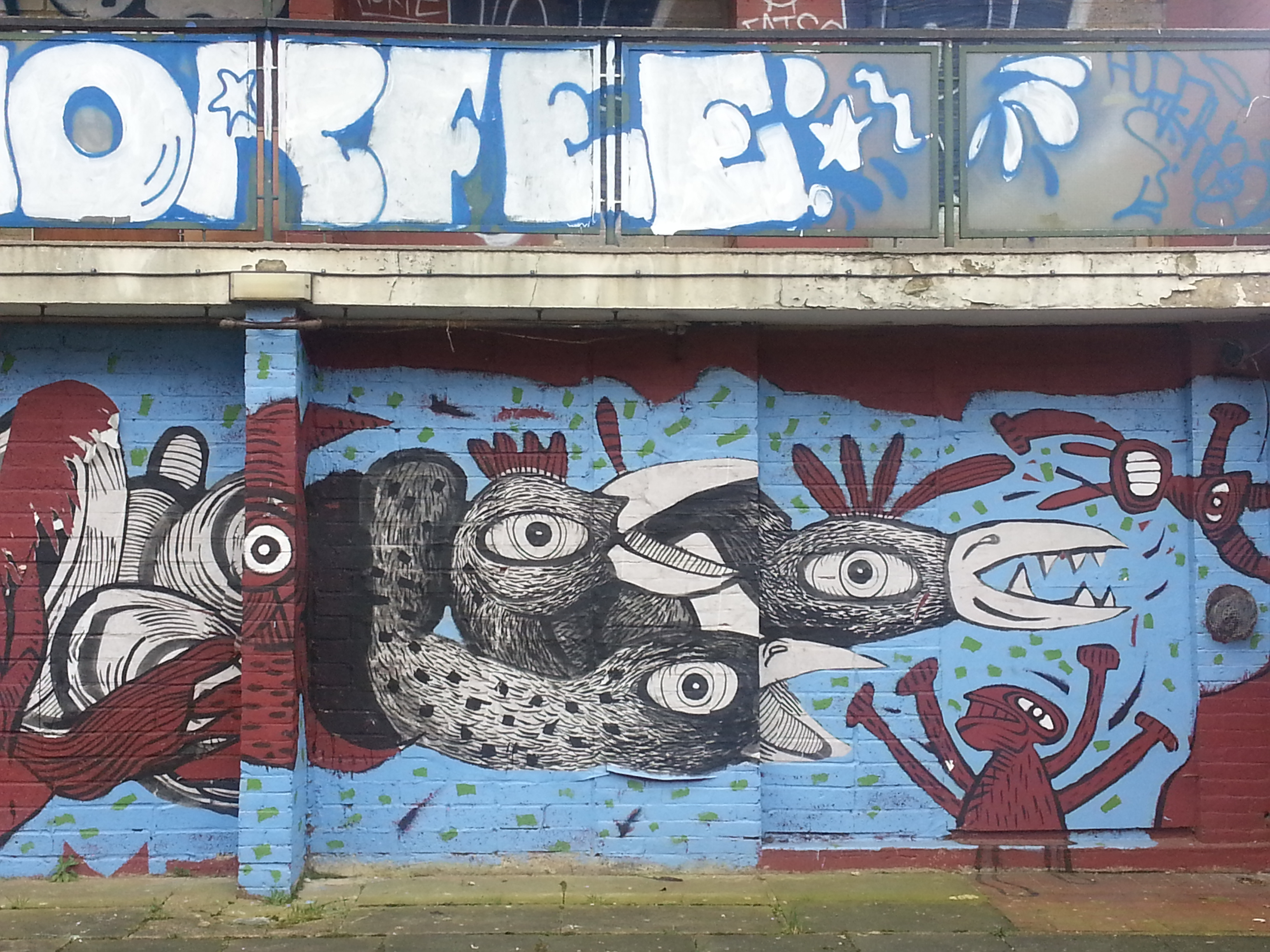 The buildings emptied and finally we were the only inhabitants. It was a cold spring and we could hear the rats rattling around in the walls of the empty rooms next to us. Finally, the landlord had to give us notice and the building was hoarded, covering all the murals that studio partner Nazir Tanbouli had done around the buildings.