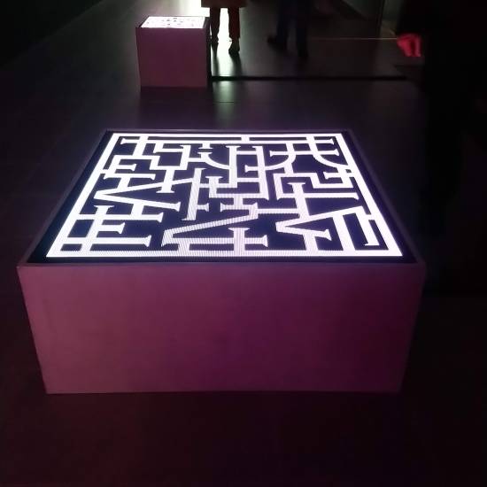To get the most of the show you were expected to download an app to your smartphone, and point the phone camera at a sigil mounted on one of several concrete columns. Your phone becomes your interface with the gallery. I didn’t do that for the most mundane of reasons: my Sony Xperia was apparently the wrong kind of phone. I bought it cos it takes amazing photos, but I think you probably needed a very hi-end phone to get those apps working, which kind of begs the question about the critique of wealth distribution. No matter – the gallery supplied i-pads you could use to traverse the virtual spaces. I’m not really a fan of fiddling with gadgets in an exhibition, especially not the pesky phone. I associate my phone to work, not leisure and usually switch it off when I am at a show. I’d rather just a straightforward VR headset.