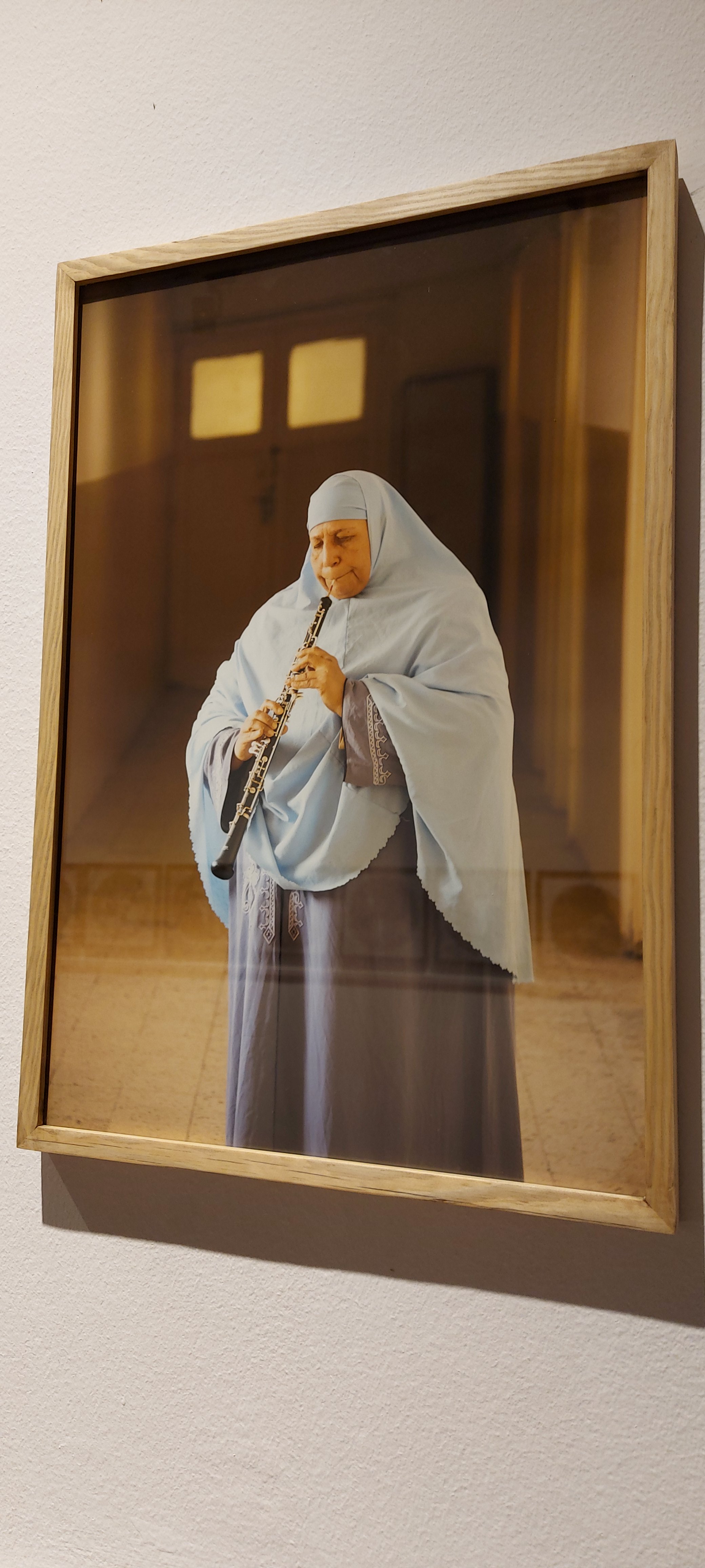 Moving on, I visited ‘Mu’anath’ in a large gallery in the aptly-named and highly atmospheric Kodak Passageway. ‘Mu’anath’ means (loosely) ‘feminine,’ and although it is not solely a photographic exhibition, it features some very fine photographic work by and about women. It is less tightly-curated than ‘Miscegenation ‘but is an enjoyable show to explore. Outstanding for me was the portrait series by Bahia Shehab, ‘Light and Hope: Blind Women’s Orchestra.’ The orchestra, made up of visually-impaired women, was founded in 1950 and is still going strong playing classical compositions. Shehab’s portraits, both still and video images, are striking and moving. She captures the women’s shyness and pride, to wonderful effect. Nelly El Sharkawy is featured in this show as well, with a wonderfully imagined candy-colored architectural dream image. Marwa Adel also appears with a substantial narrative work that combines tender beauty with unsettling metaphysical unease.