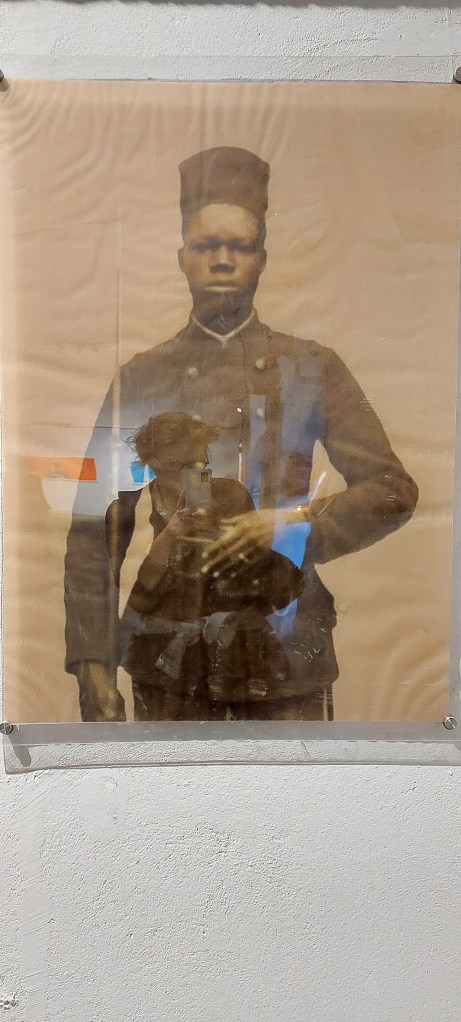 The printing process, especially colour printing, is highly important in this exhibition and Alfadni’s fabric uses the Dutch wax print design which is associated with ‘African’ textiles – these popular colours and designs can be seen all over Africa and in the African diaspora (I’m very familiar with them in my home neighbourhood in Dalston, for example) Yinka Shonibare is another artist who uses these textile designs in his work but Alfadni incorporates a range of photographs into the textile and then turns the printed textile into pastiche uniforms for the Askari. The complexity of the work mirrors the complexity of the issue, yet the work is accessible to any audience – as indeed is the question of Black Africa’s place in Egypt; it is a subject which should be discussed and I hope that this exhibition will offer a sound opportunity to do exactly that.