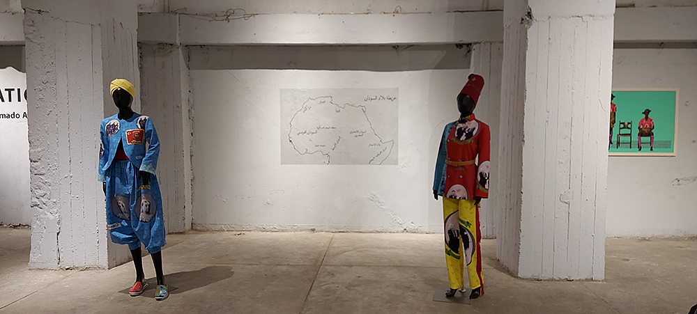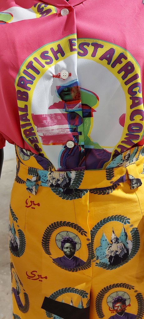 AlFadni starts with a black and white photograph of a Sudanese soldier, the Askari, he then takes it, and all the iconography associated with the colonial era and the Anglo-Egyptian period (including Queen Victoria and their totemic events of the time such as the Battle of Omdurman) and transposes them into a complex installation that includes photography, costume design and and printing onto fabric.