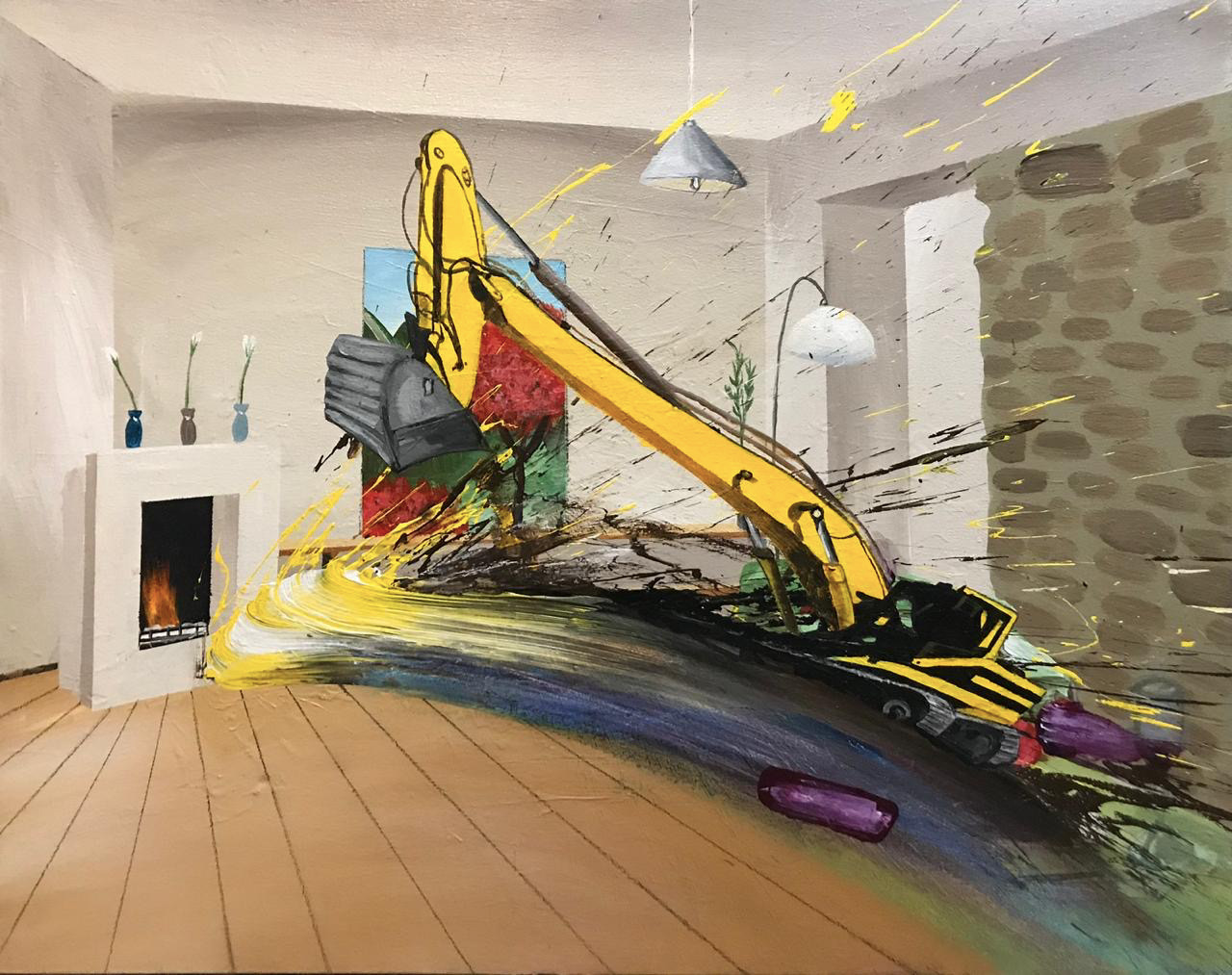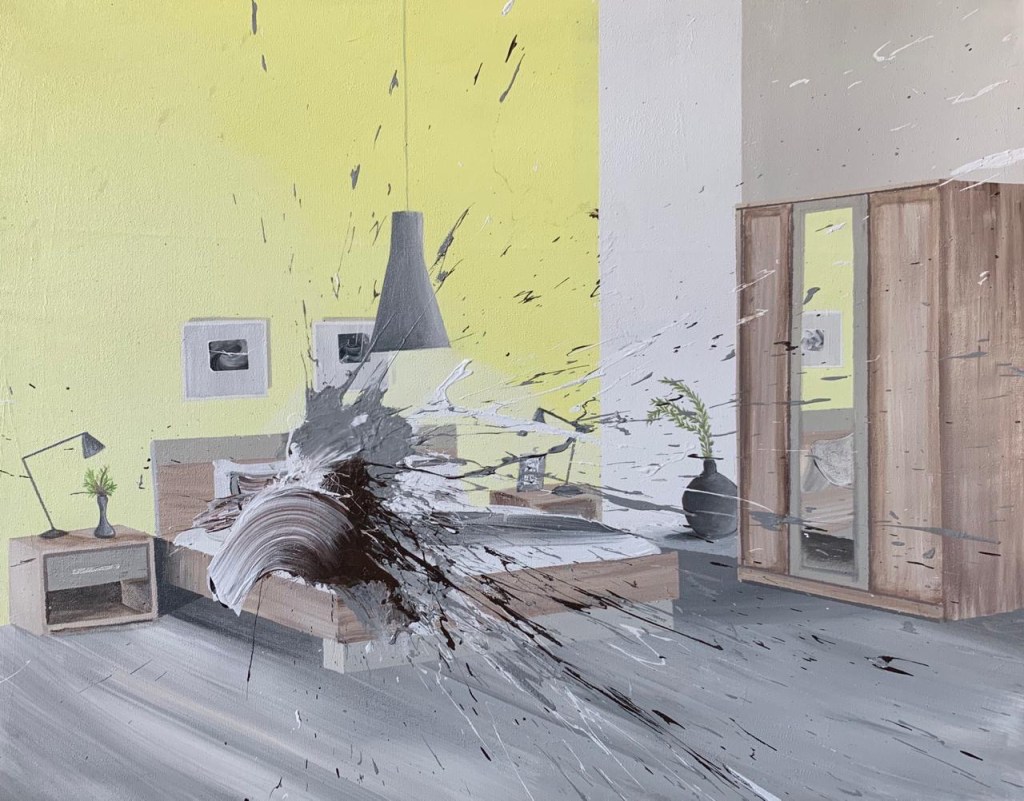 If ’90 Days in the Studio’ was challenging to comprehend half a year ago, it is a collection of pictures whose time has come. Made in the early days of panic and frustration, the work moves from being a wordless shriek into the void to a life-affirming and thoroughly enjoyable ‘boom!’ of blowing up, crashing down, smashing the stasis, laughing all the while.