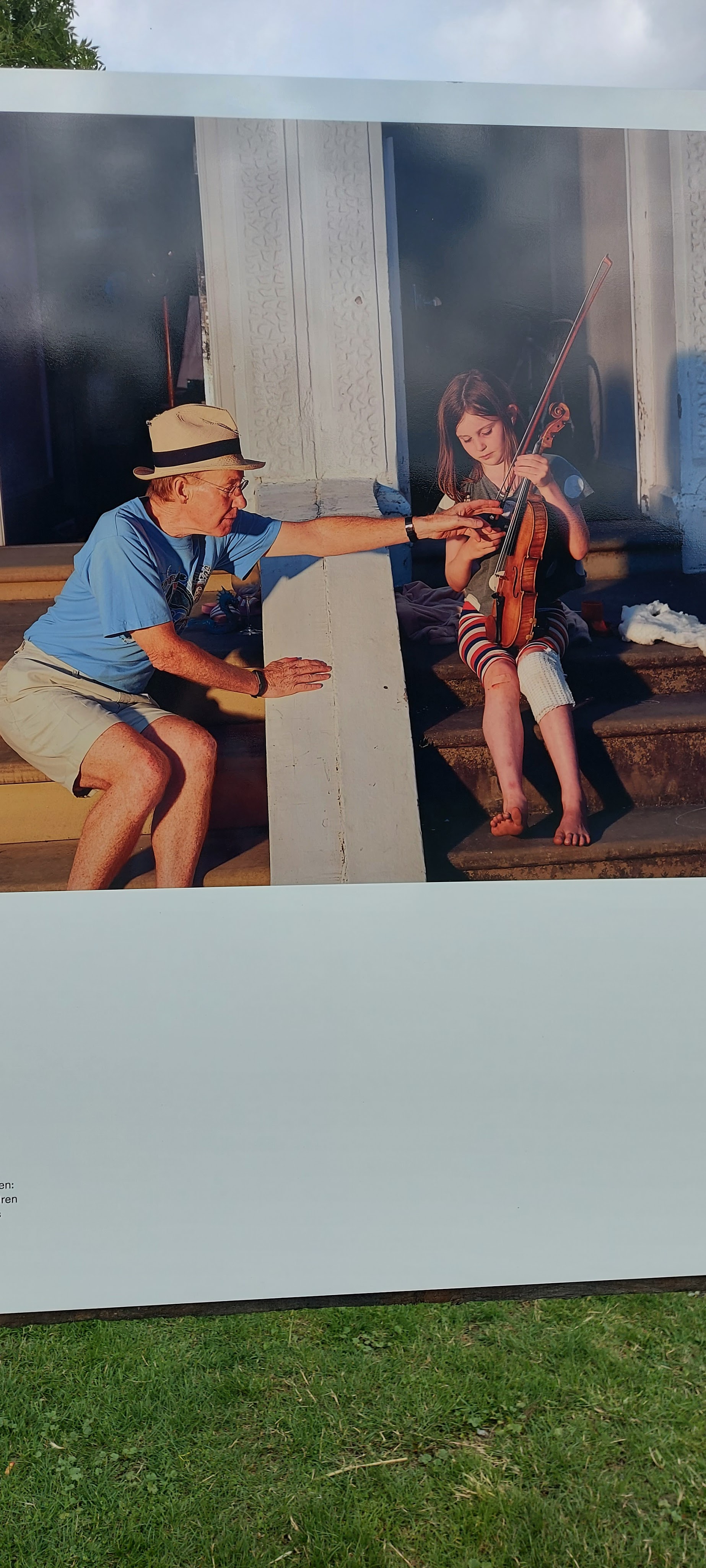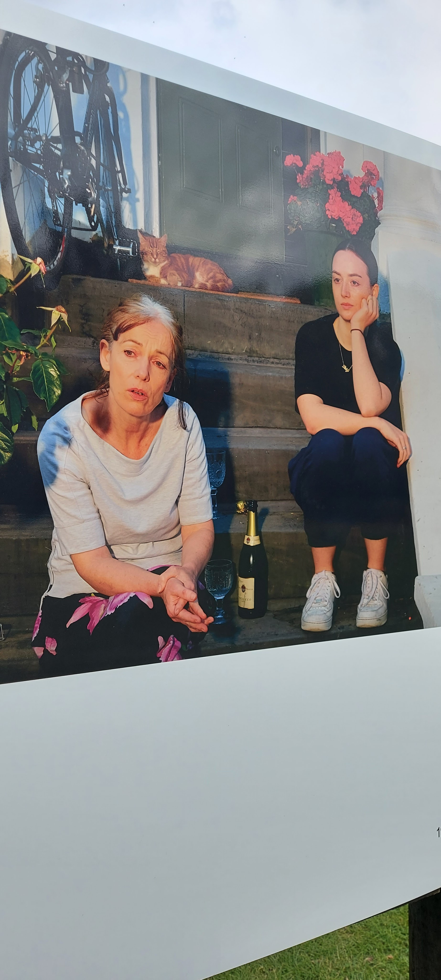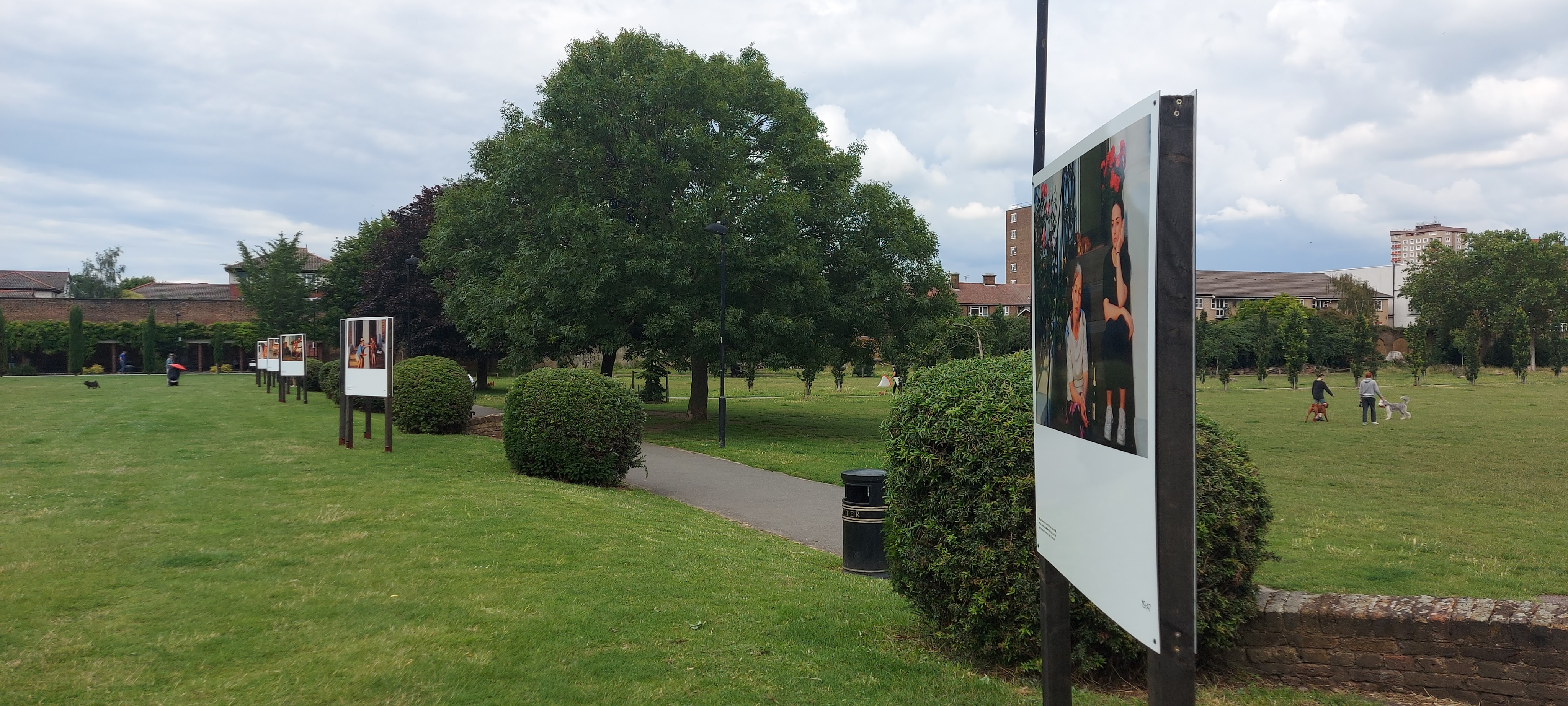 That’s why Olivia Harris’s photography installation at Haggerston Park in London E2 is so enjoyable and fascinating. In a series of large, colour photographs, she captures the way people in the neighbourhood coped with enforced isolation. She photographed them in their gardens, stairwells, rooftops. She shows both the isolation and the joyous moments when people were able to come together.