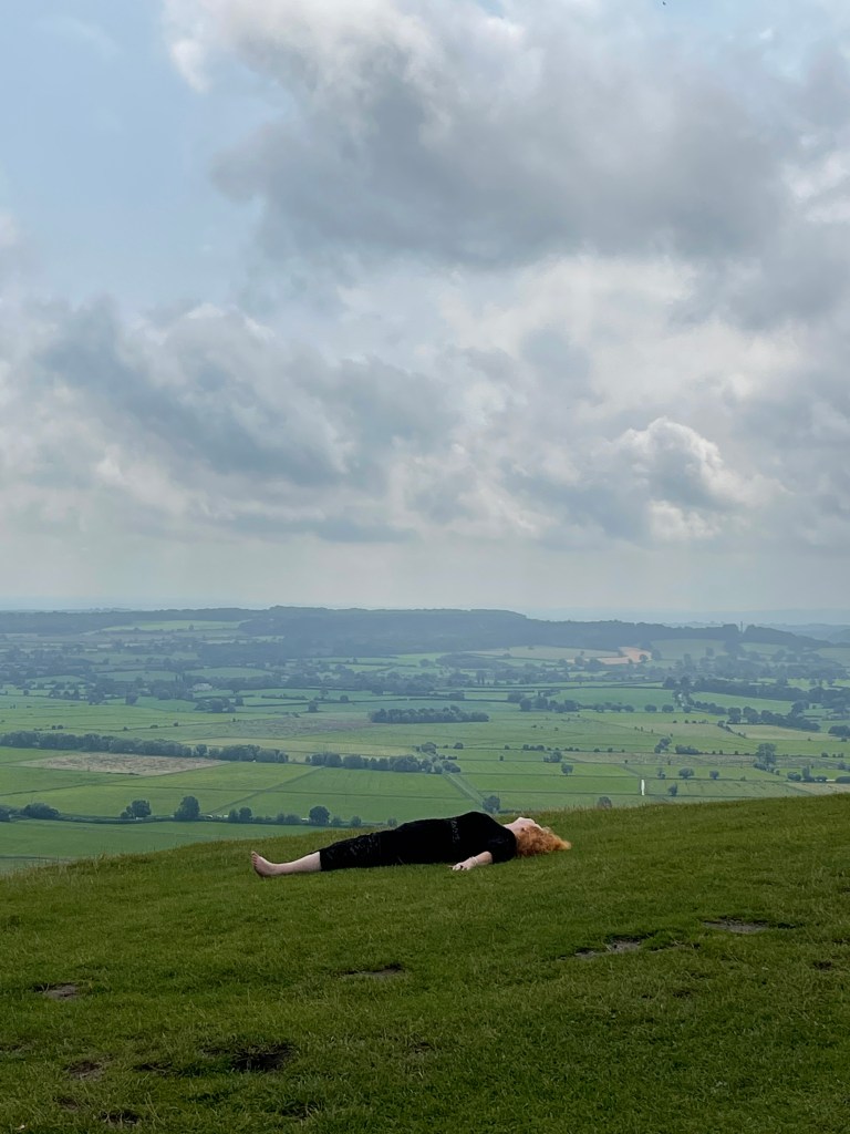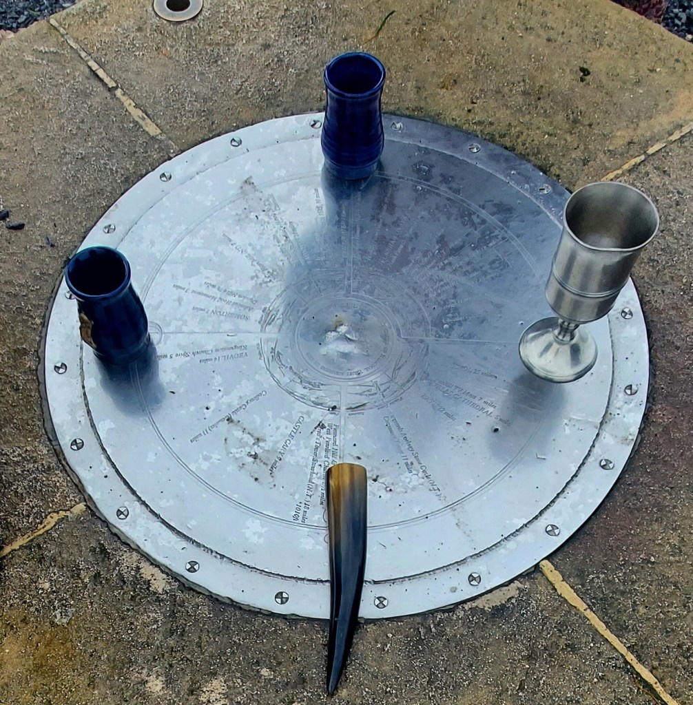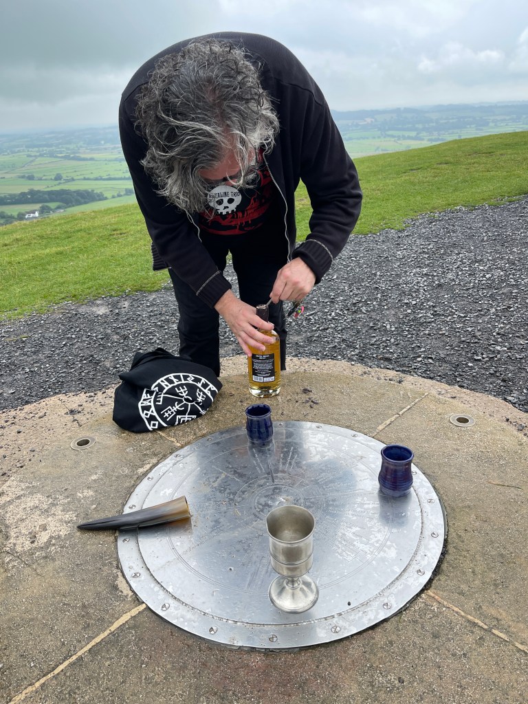 We decided to practice a little magic. So, before the ascent, we stopped off at Wyrdraven, a little shop that describes itself as a shop ‘for all things Viking’ to purchase a bottle of good mead and some drinking vessels. I got a drinking horn; the others bought mead cups. After that, we started our journey up the Tor. It wasn’t easy, and it was a bit muddy at first. But at the top, we laid out our mead cups, poured the golden libations, invoked the Goddess and the sun god and drank the delicious mead. Then we played some suitably witchy music (Coil) and danced around on the top of the Tor for a while, eventually having a nice lie-down. After a time, we made our way back down and popped into the Rifleman Pub for a beer and a plate of vegan nachos (nom!).