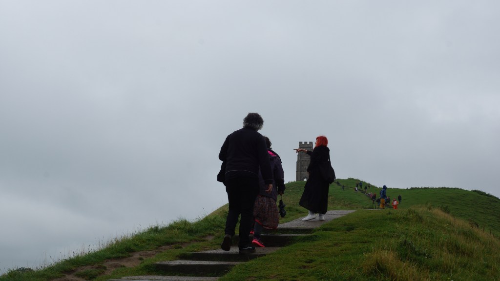The first and most crucial part of Glastonbury is probably Glastonbury Tor, the large Hill just on the outskirts of the town centre which was a pilgrimage site and which you can climb to find the remnants of a church. It’s quite a substantial climb, and it was raining but by the time we got to the top the Sun came out and the weather was glorious, so in a sense, it was a pilgrimage through some initial difficulty.