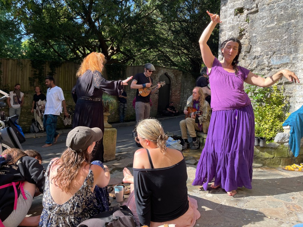Well, I decided to go there with an open mind, not to be closed to the idea of this sacredness or spirituality but at the same time not necessarily ready to believe in every single thing I see or hear. Actually, what was great about Glastonbury is that nobody will shove “woo” down your throat at all; instead, everything is available to you, and you can take from it what you want, leave behind what you don’t want. There is a beautiful ‘Goddess Temple’ where they do ceremonies, drum circles, and you can also just go there and meditate. We participated in a drum circle as well as meditated for a bit. It was welcoming and pleasant.