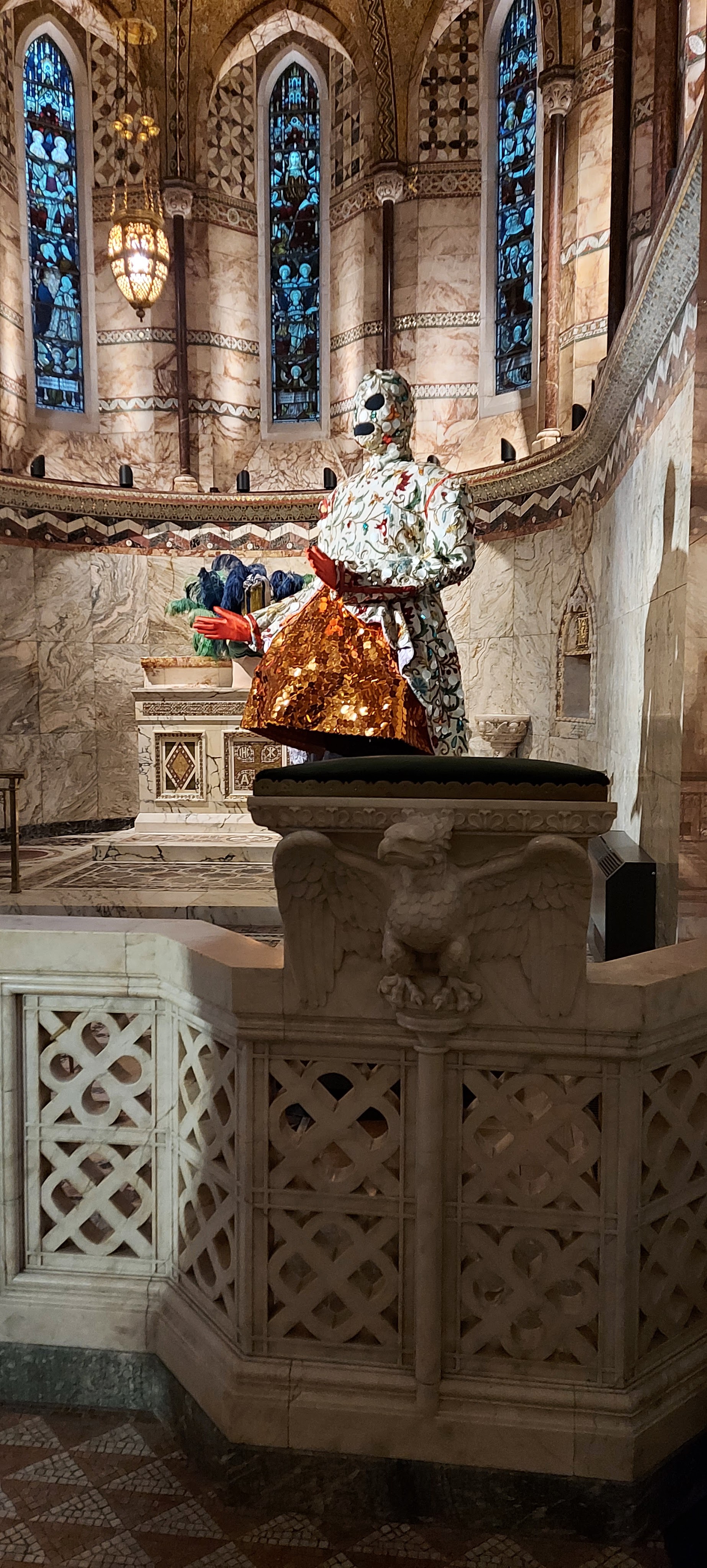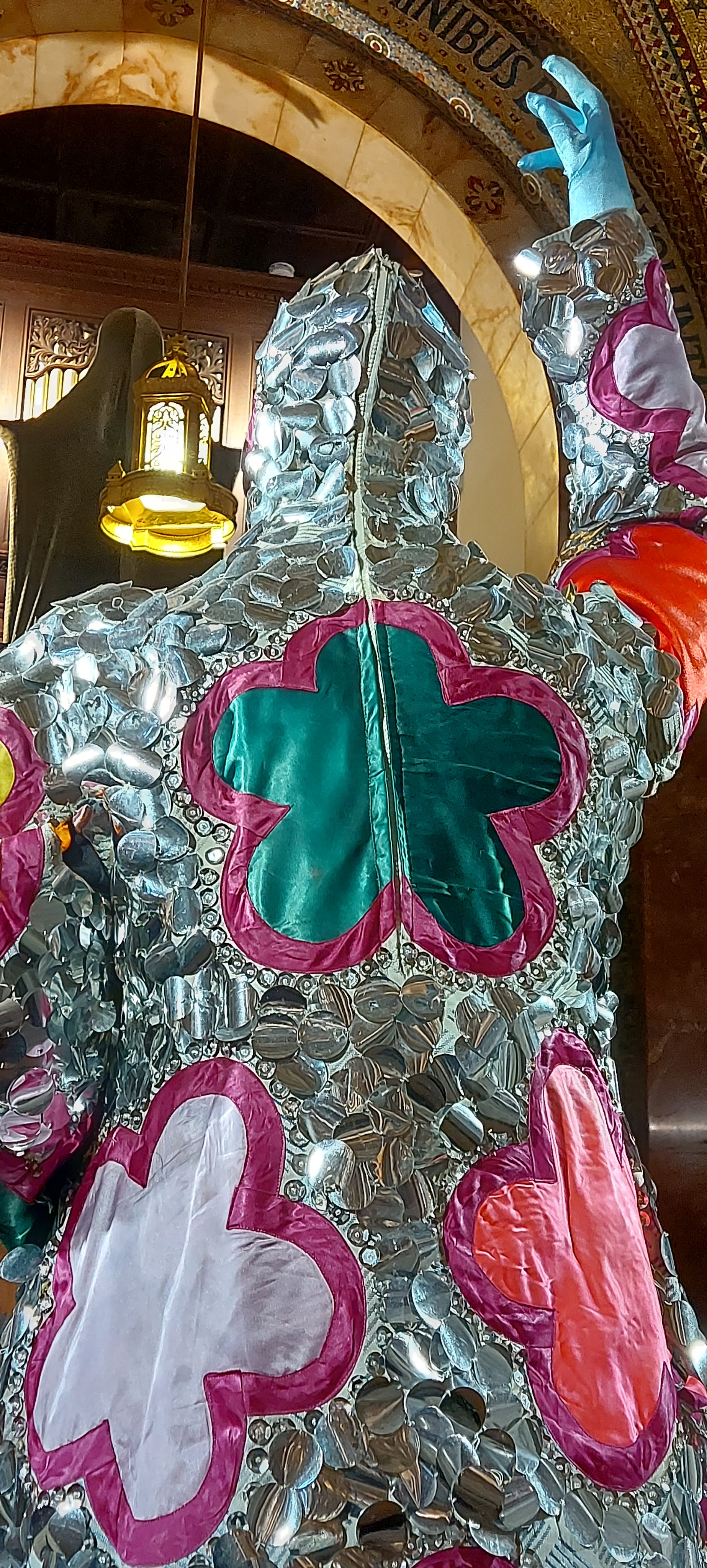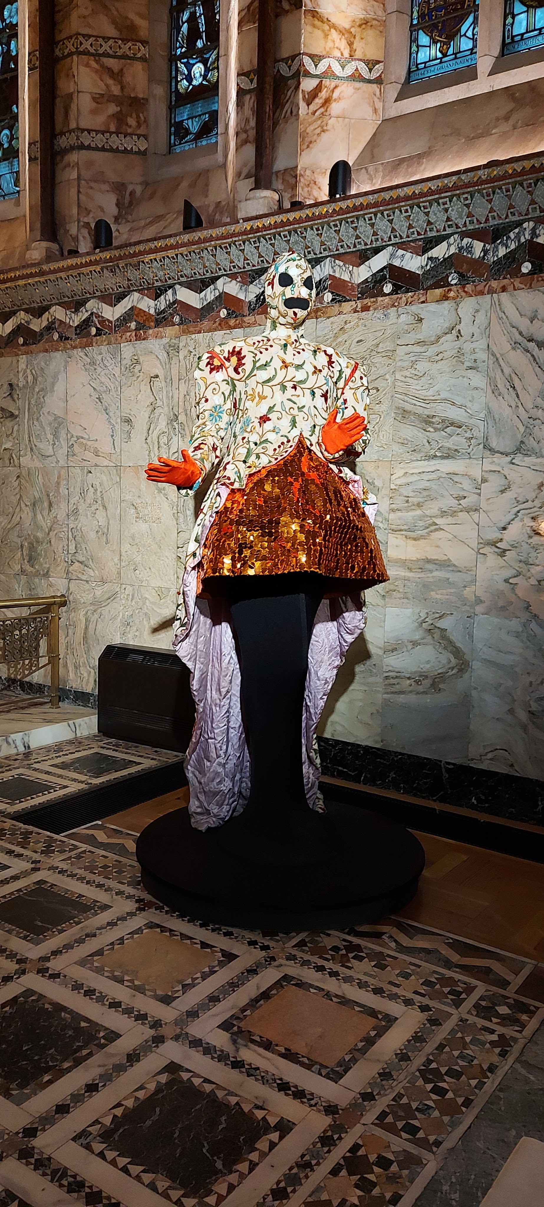 I admired Bowery’s art and life and I was very happy to see this small but lovely exhibition at the gorgeous Fitzrovia Chapel in London. The show displays seven of Bowery’s astonishing handmade costumes and a gripping documentary by Hannah Watson that interviews many o the artist’s friends, collaborators, and admirers. It is a warm, honest and intelligent portrait of a rare artistic soul.