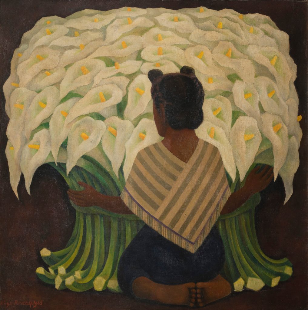 Rivera had a great deal of sympathy for the peasant and working-class Mexicans, employing them as models and painting them with empathy and sensitivity. He’s never patronising in his imagery of peasant women in particular; he shows off the back breaking grind of their labours but also depicts them as living monuments, icons of an ancient Mexican matrilineal tradition as old as the geological formation of the land.