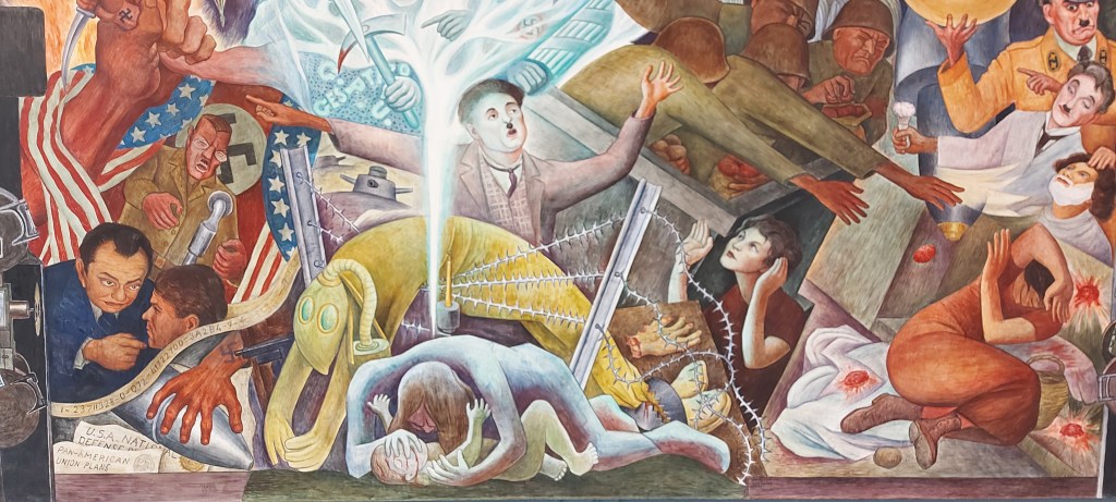 The SF MOMA has one of Rivera’s murals on long term display, a magnificent work Diego Rivera’s largest portable mural, Pan American Unity, which was actually moved from City College of San Francisco (CCSF) to the SFMOMA. Pan American Unity comprises ten massive fresco panels that are rich in symbolism and imagery from across the North American continent, including Mexico, the United States, and Canada.