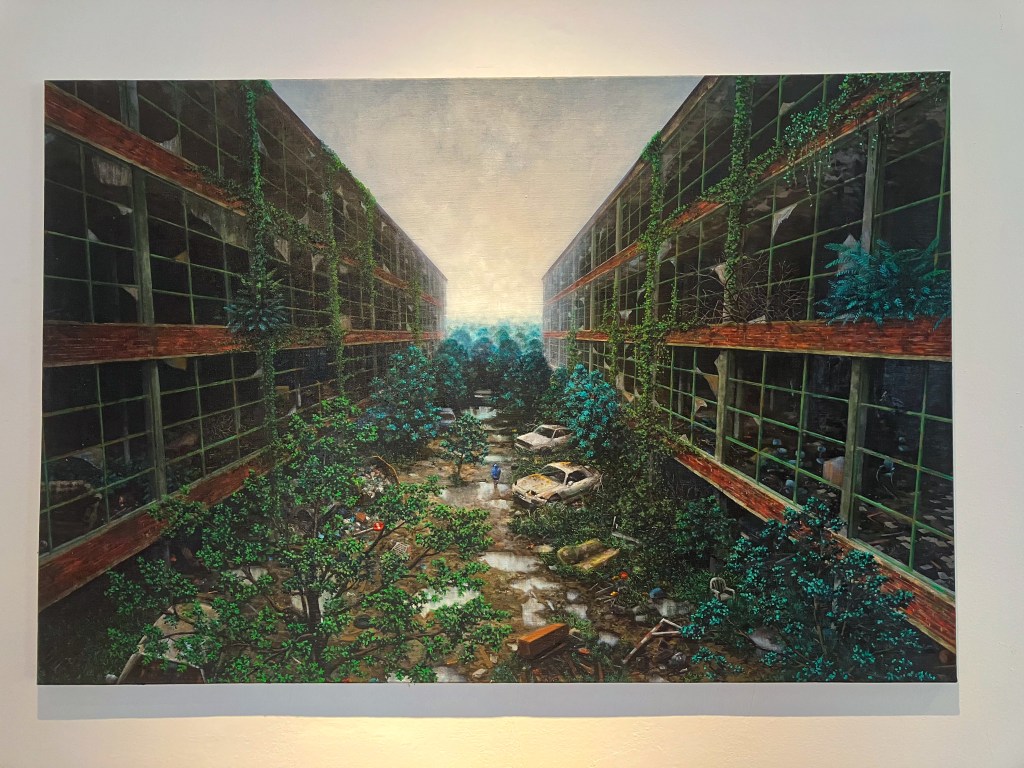 The exhibition addressed the problem that Utopian vision always implies its doppelganger, Dystopia. Dračić‘s paintings expressed a deep unease with future visions. Aware that where we are now has got. to be the starting point of where we must go next, he offers up delicately-rendered, color-saturated visions of total collapse, as beautiful as they are harrowing.