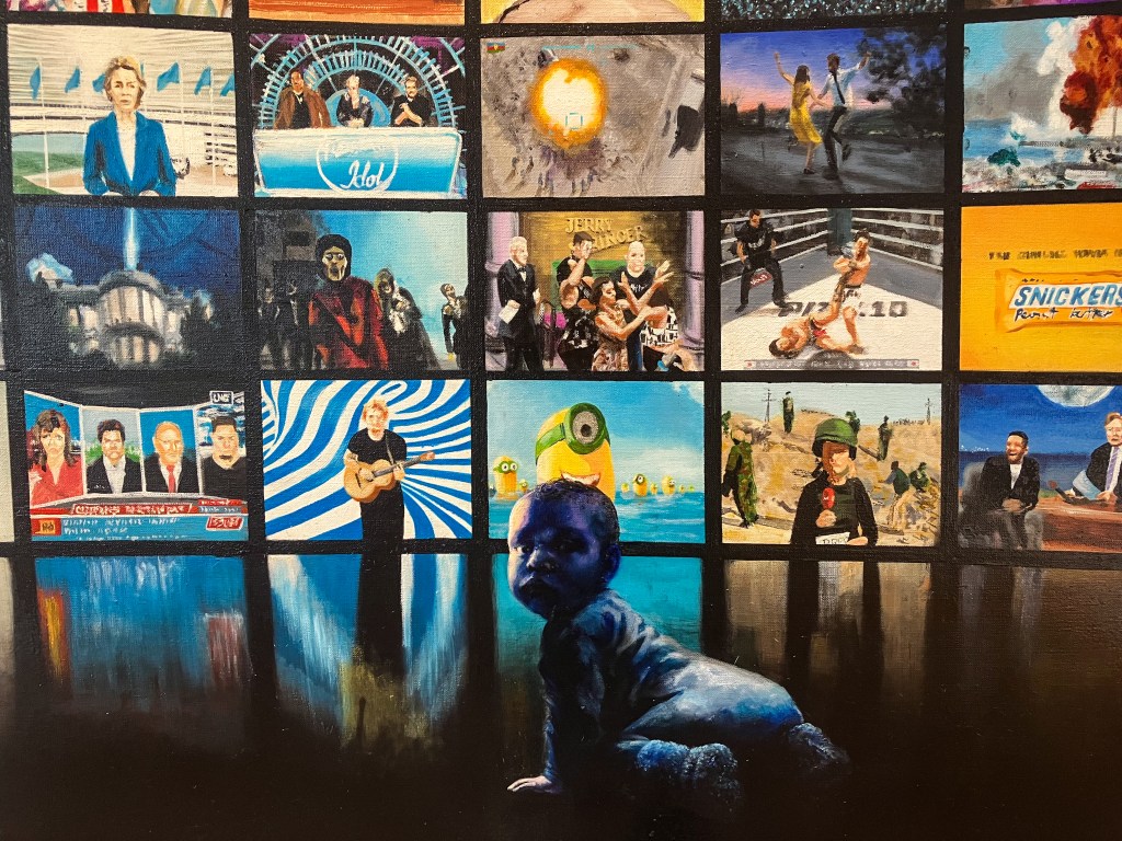 I visited the Filodrammatica Gallery in Rijeka’s downtown to see the exhibition that featured two well known Croatian artists Sebastijan Dračić and Ana Sladetić whose work I had always wanted to see. I was in luck. I had seen Dračić‘s work online but was unprepared by how overwhelming his canvases are! He is technically an ‘academic’ painter, trained in the fullest expertise of realistic oil painting. But this description is meaningless, since his creative expression is anything but staid or conventional. Words like photorealistic, photographic or even realist aren’t useful. He sees – and shows us – what a camera cannot: the future.