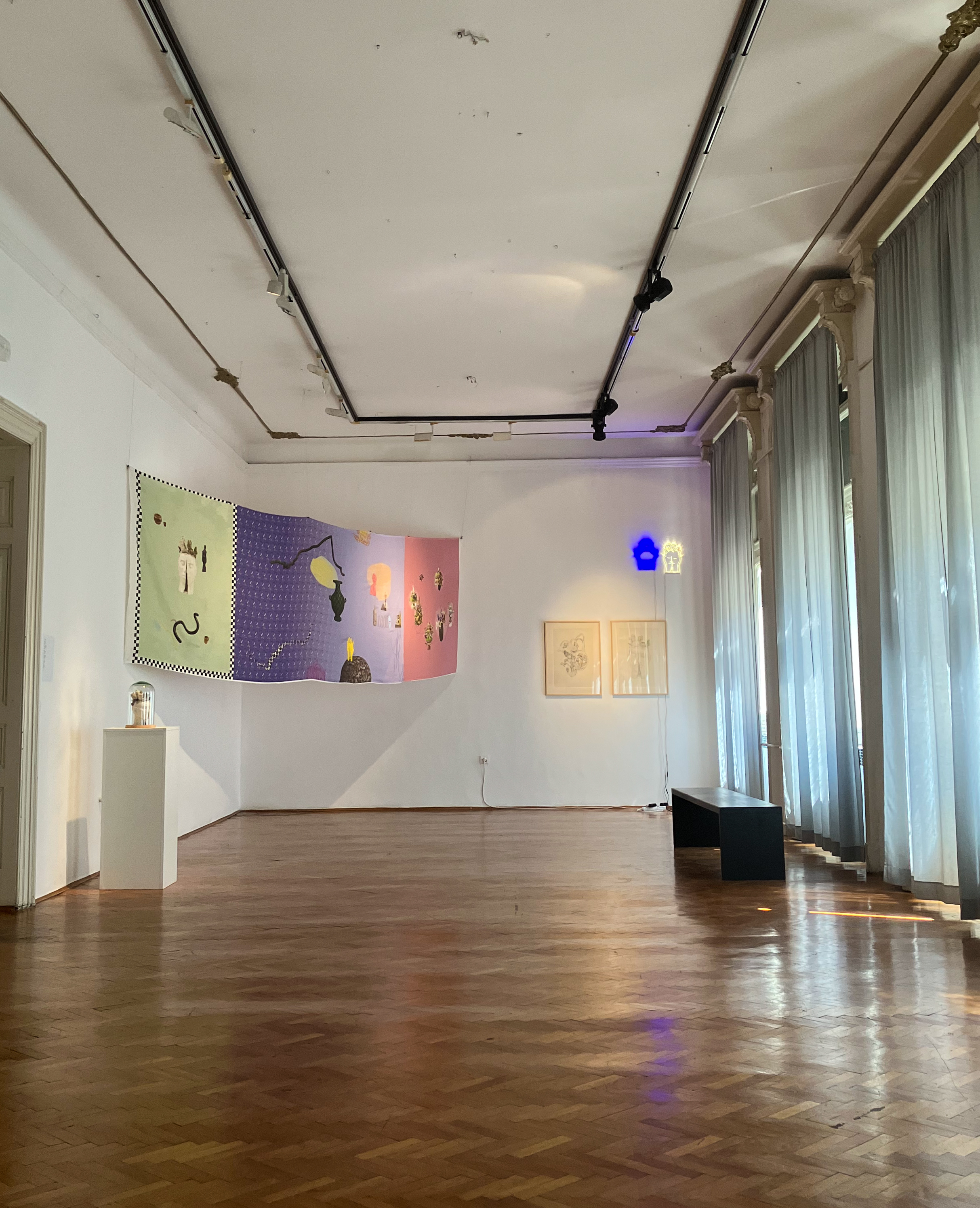 With an assemblage of textile, objects, light and drawing, Ana Sladetić