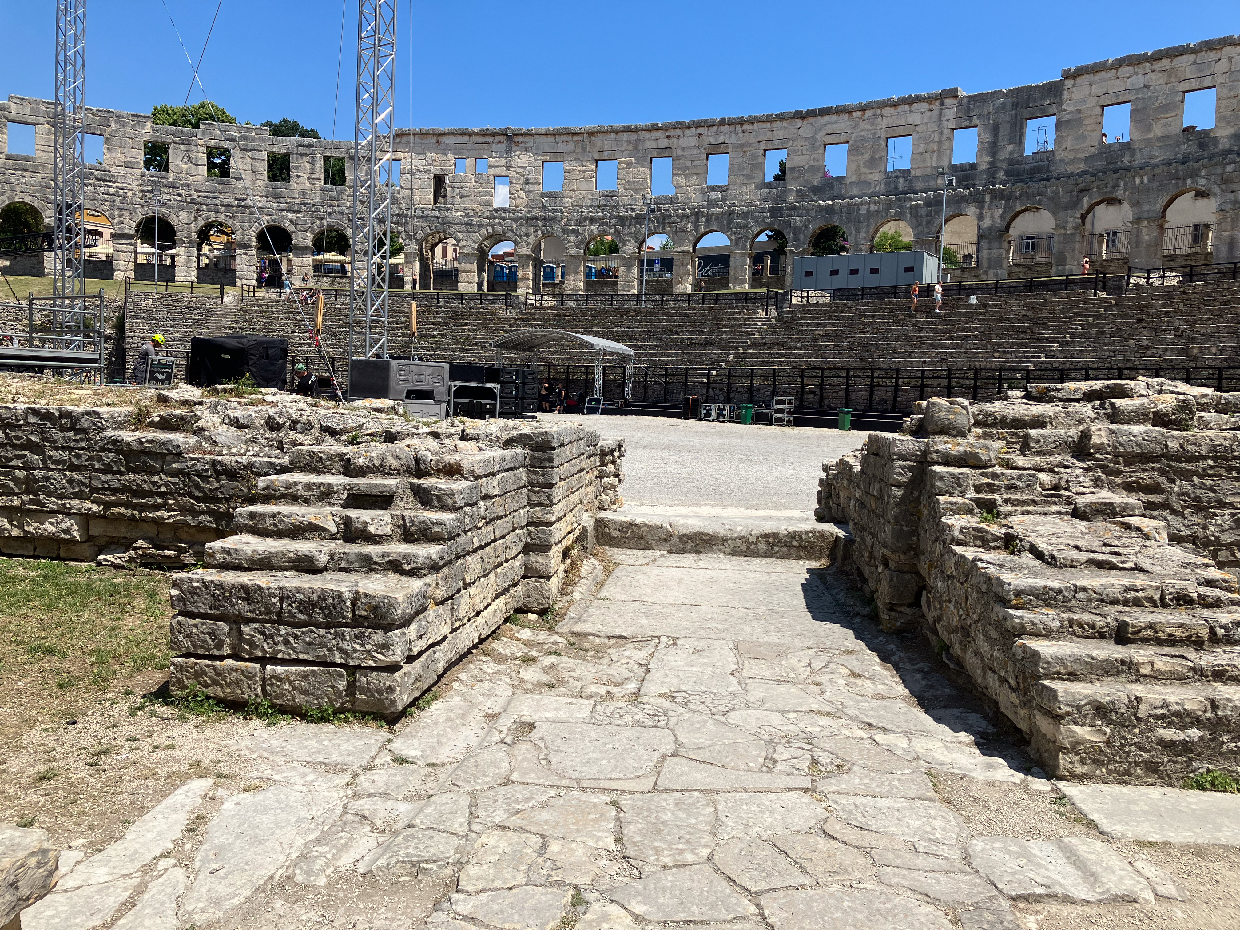 Pula (Pola to the Romans) is notable for its many old Roman structures, the most famous of which is the Pula Arena, one of the best surviving Roman amphitheatres. The city has a rich history of wine production, fishing, shipbuilding, and tourism. From ancient Roman times until recently, it served as the administrative centre of Istria.