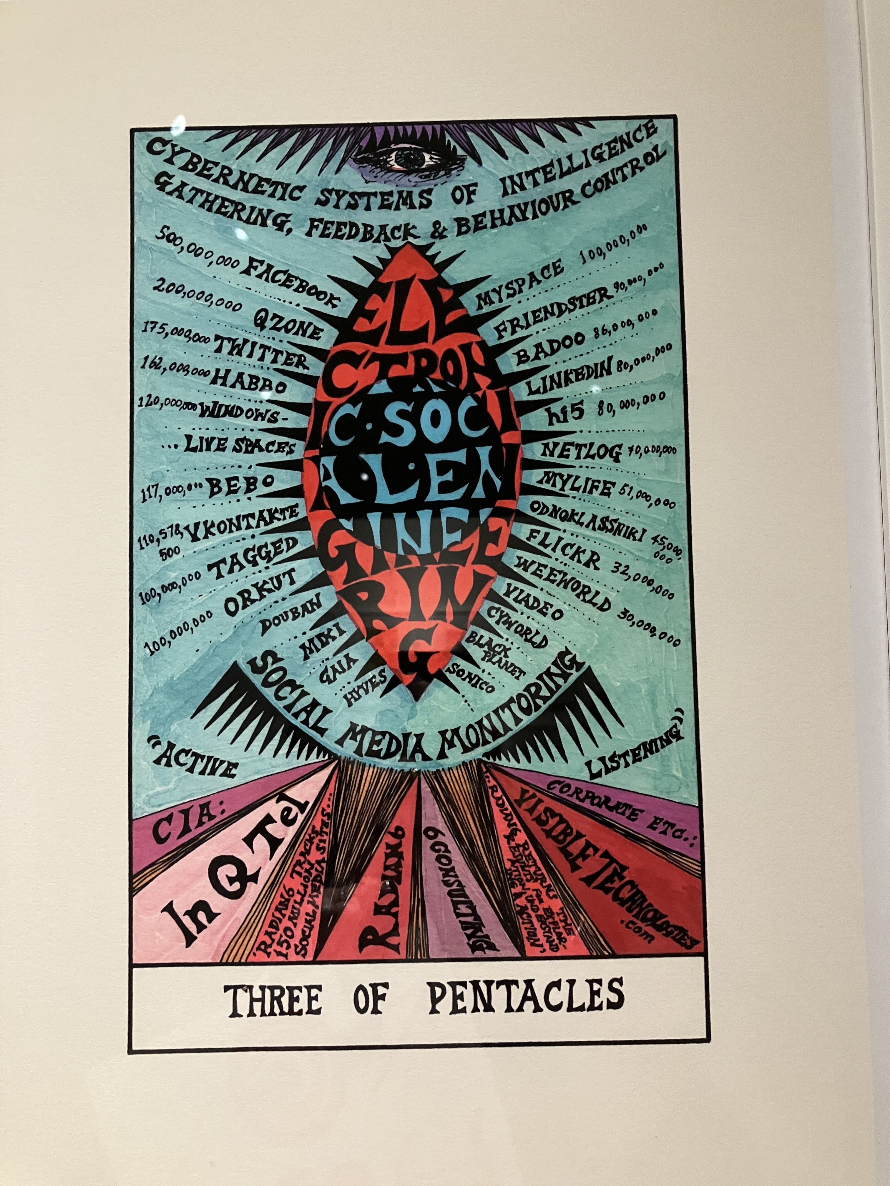 Warburg shows the early cards of the Italian Renaissance, the Egyptomania of the Order of the Golden Dawn, Aleister Crowley and Frieda Harris’ stunning Thoth Deck, and the freshly published deck of chaos magician Austin Osman Spare. Rather interestingly, author Italo Calvino appears in the show via his book The Castle of Crossed Destinies (which I now MUST read!). You can also see Suzanne Treister’s modern HEXEN decks, which require thorough scrutiny. It is fascinating to trace the way different eras and different artists have interpreted the Major and Minor Arcana and the pictographs of the cards.