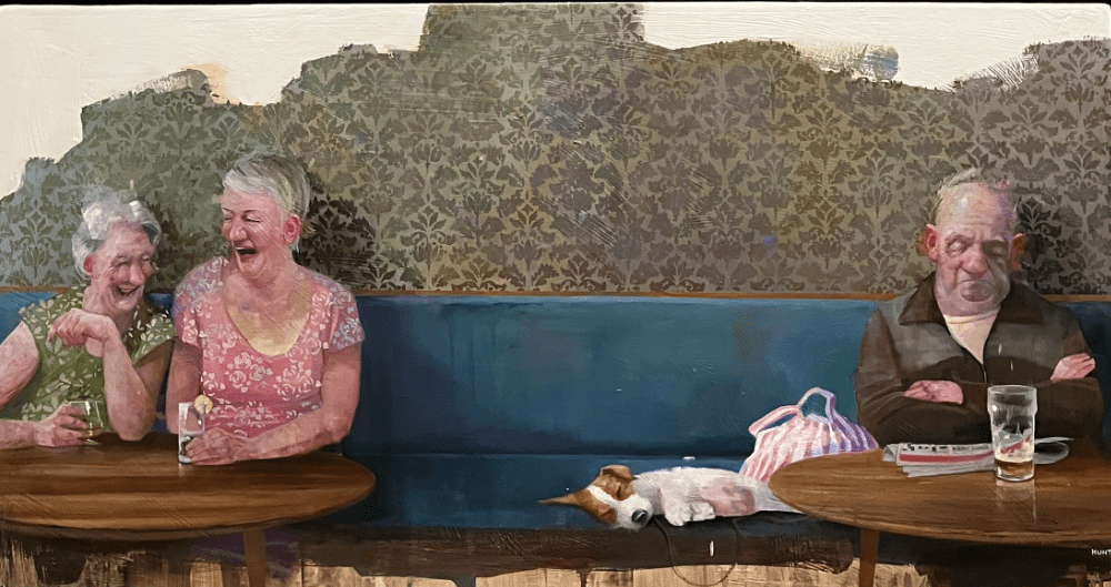 The pub has long been considered the centre of a community, and Hunt conveys this brilliantly. It’s very sad to know that today so many pubs have disappeared, mostly due to developer greed but in some cases due to demographic change. Andrew Hunt’s paintings remind the viewer of humanity, culture and history and reminds us especially to pay attention to the elders who make up the subjects of his paintings . Here is pure humanity; whether his subjects are exuberant or grumpy or contemplative, they are so real!