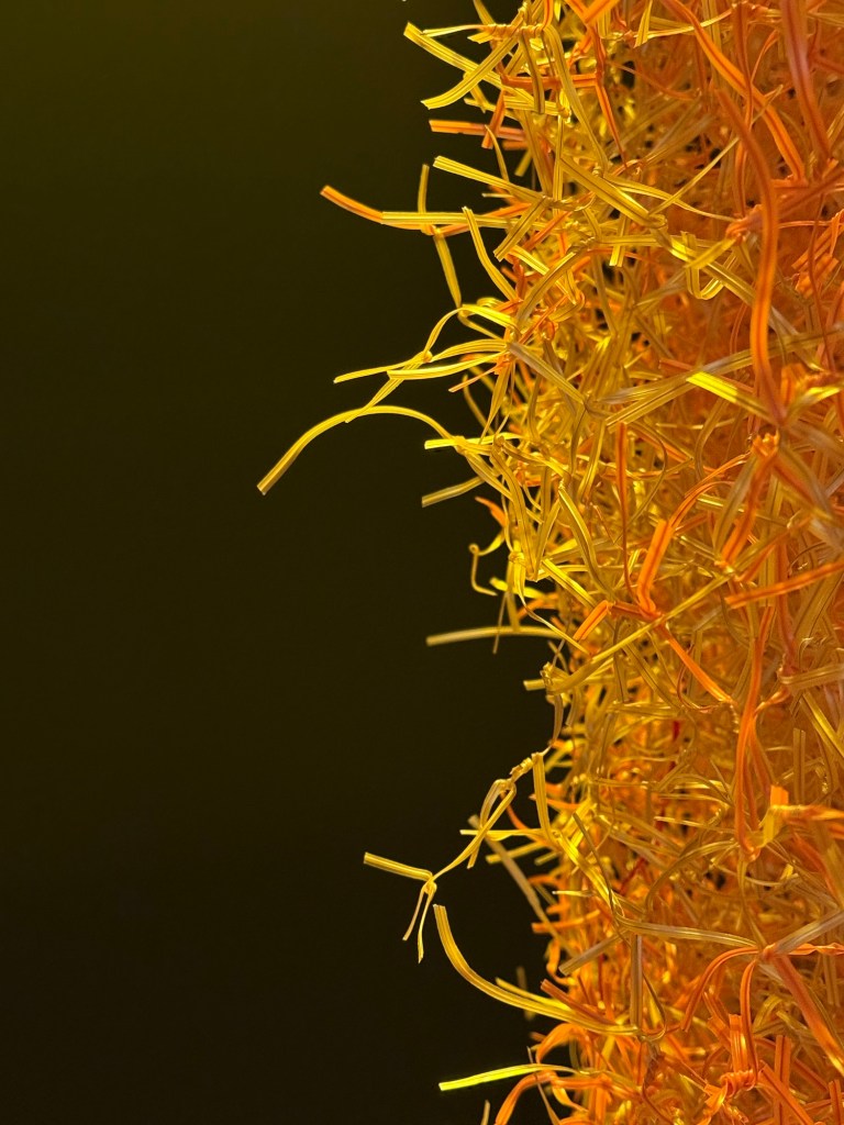 There is no narration or forced meaning to the piece beyond being what it is. Situated on the border between sculpture and drawing, embroidery and basketry, the work recalls many of the craft traditions of the region while at the same time exploring the deepest and most philosophical questions about the nature of matter and existence. Despite its appearance as if emanating from the cosmos, it is handcrafted. We can only imagine the hours expended, and the many hands working to spin quickly, forming knots and twists that will become part of a this magnificent whole.