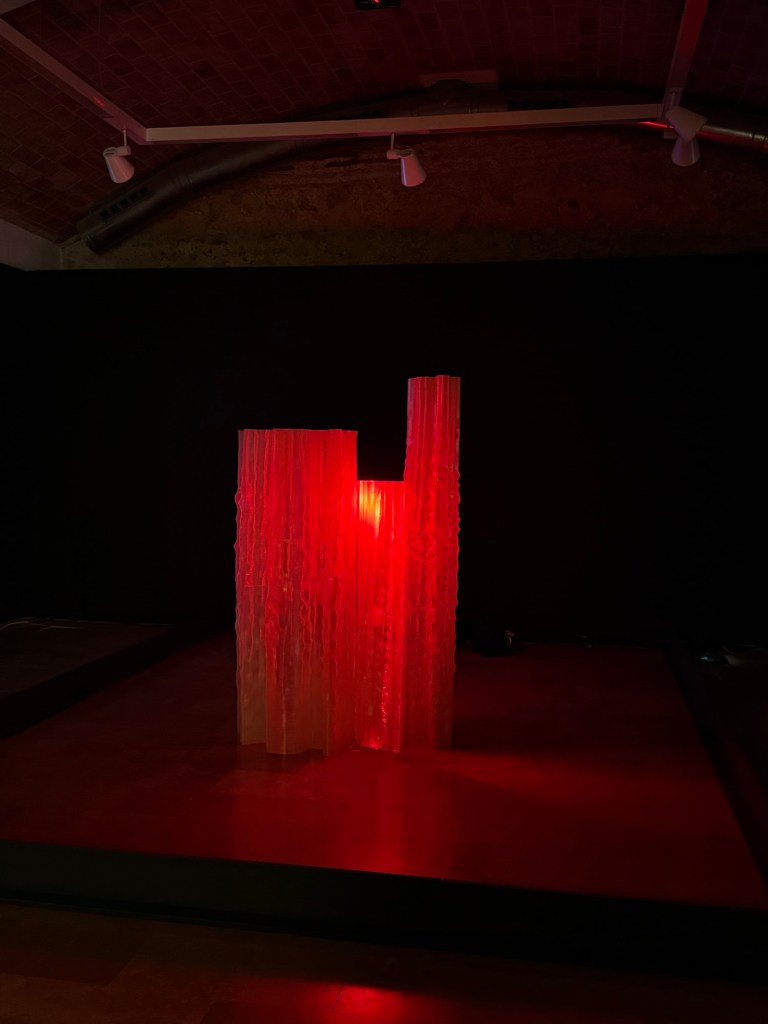 It displays multimedia installations, performance, video art, generative artificial intelligence, laser installations, fibre optics, video game development, and creation labs. The works begin with wild experimentation and employ technology as a tool for thought, production, and encounter.