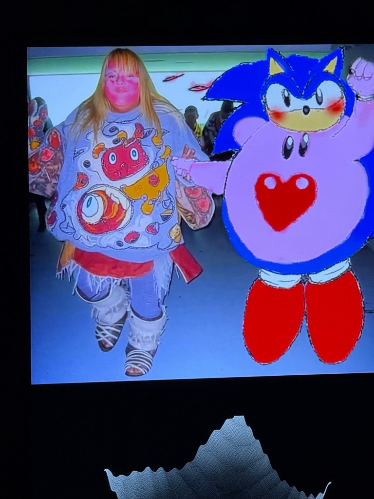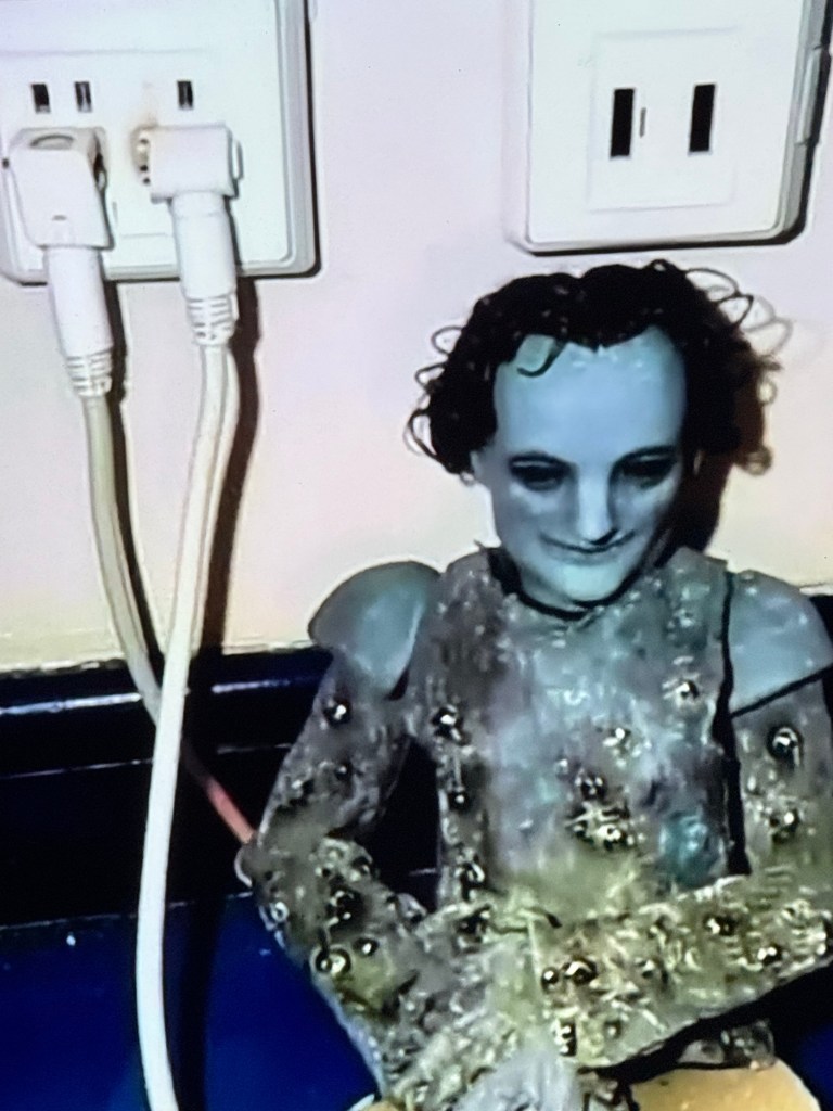Well maybe that’s not really quite it because actually the screens themselves are on ayahuasca – they are vomiting up these horrific images at the same time. The images are creepy. They’re also hilarious. They appeal to the immature childish and quite shameful part of our ourselves – they are Shadow material part excellence. I love it and I remember myself saying while I was in the room that I really wanted to have the screens in my house so I could look at them all day long. What a strange confession! I guess it says something about me – but I bet I’m not alone.
