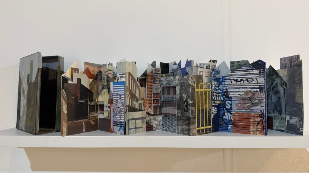Hannah Frase mixed media artist book Forgotten Neighbourhoods is a small scale piece that could easily have been overlooked among the larger and more bombastic pieces in the show. I found it really profoundly moving and exquisite in its craftsmanship. It is a mixed media concertina book and I particularly like this form, which you don’t see as often as you should.