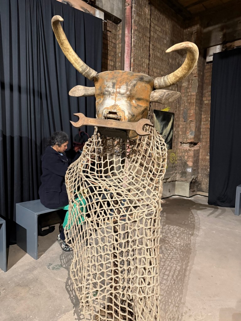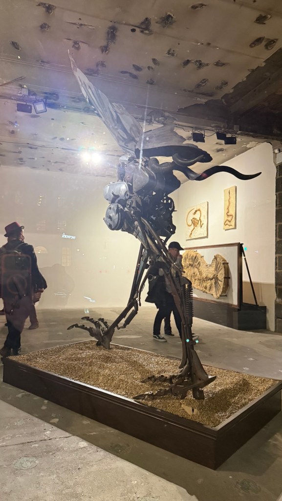 So, who is Joe Rush anyway? If you are a follower of contemporary art you may not know his name at all which, given the work you can see in these pictures, might seem surprising. But if you frequent the Glastonbury Festival you possibly do know him, because he and his group, the Mutoid Waste Company, have been involved with Glastonbury for decades and they create sculptures and installations for every festival. I’m not a Glastonbury person (really, I can’t imagine being made to be with that many people over several days — it would just trigger all of my anxieties and claustrophobia), so I’ve never been, although I’m sure it would be really cool. But I have seen Joe’s work at underground parties when I first came to London, and a few years ago he was involved with a really fantastic show in Fulham which I enjoyed very much and which really showcased his work.